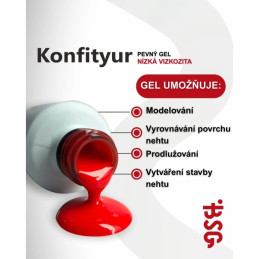 Unikátní produkt, který kombinuje vlastnosti gelového laku a tvrdého gelu, bezkonkurenční. "Konfityur" v lahvičce kombinuje tvrdost gelu na prodloužení nehtů s hustotou gellakové báze.